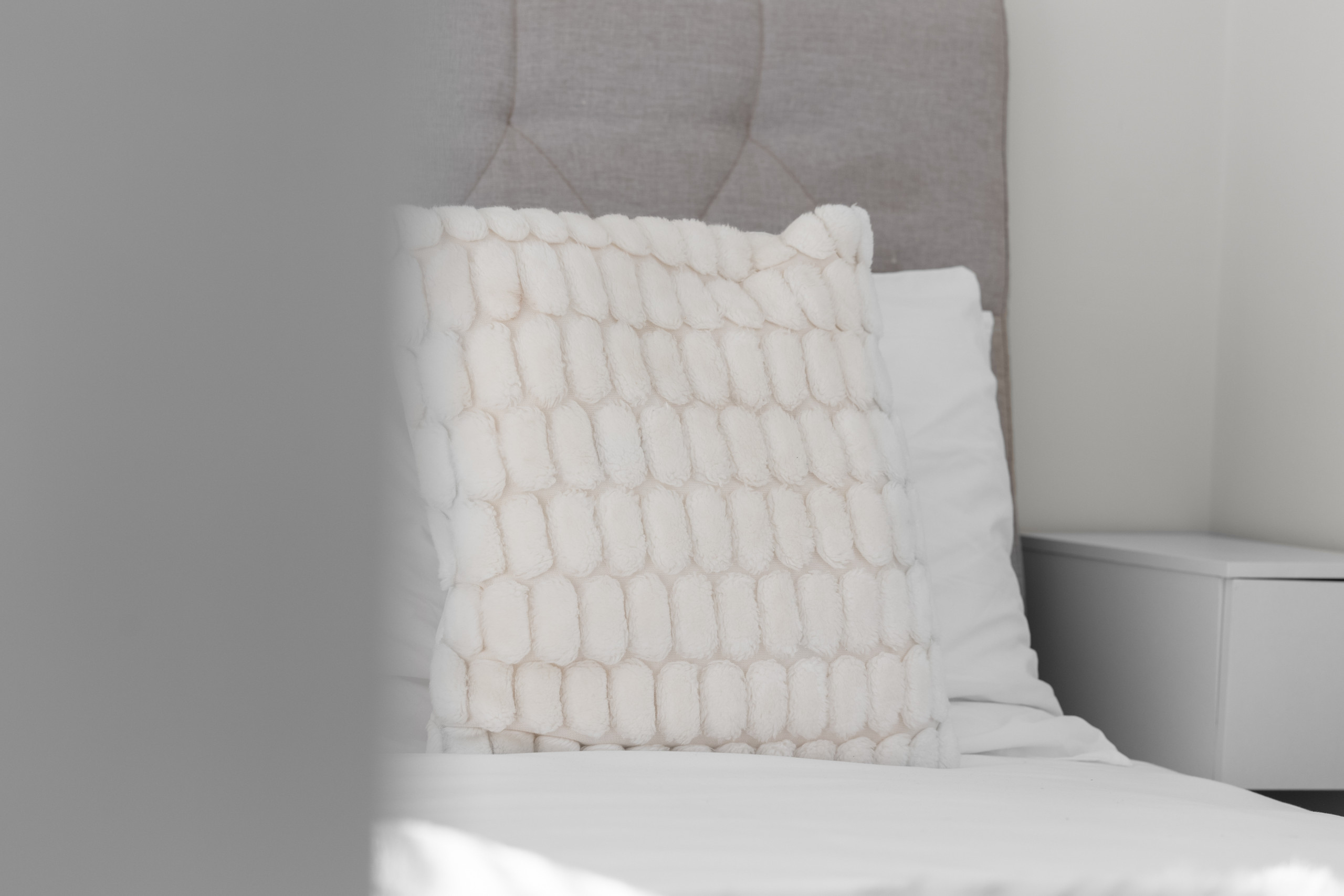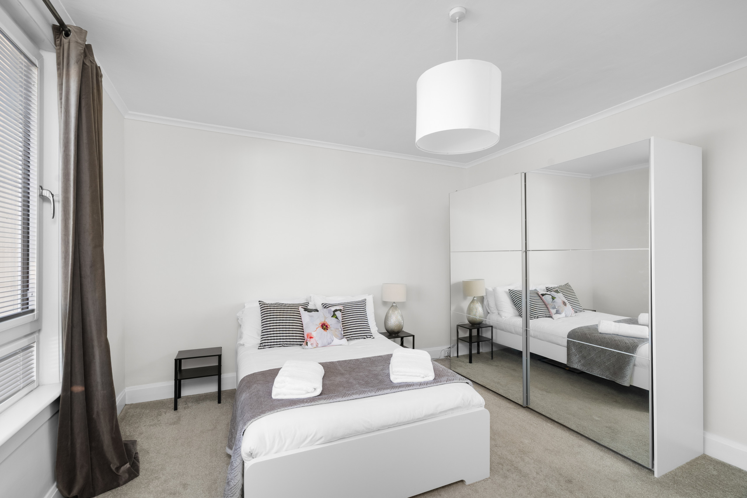 The apartment features three spacious double bedrooms, including two king-sized beds and a standard double, comfortably accommodating up to six guests. The bedrooms are designed with guest comfort in mind, featuring soft linens, ample storage space, and a neutral, calming colour palette that makes it easy to unwind after a day exploring Dundee.